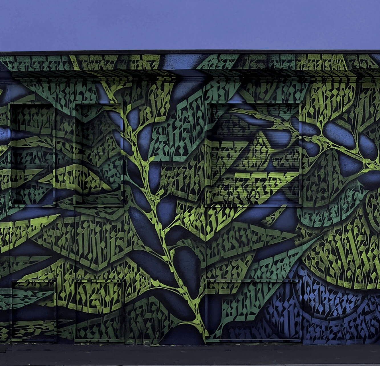 A 600-m2 mural on the walls of a former industrial building transforms an urban landscape into a lush forest. The leaves, which take centre stage on Natura su strada (Nature on the street), have been drawn using letters, the signature style of this artist, and are turned upwards, creating an ascending motion that represents not just physical movement, but also growth and maturation. Inspired by Costacurta’s constant pursuit of growth and improvement, the artist decided to draw the leaves turned upwards, symbolising the ambition to achieve new goals. The vibrant green of the leaves, ranging from the lighter to the darker shades, and the sky-blue background are colours that evoke the company’s visual identity, creating an atmosphere that is both fresh and dynamic. The work combines art and nature, offering an example of how art can contribute to the redevelopment of urban areas and enrich the lives of the people who live there.
