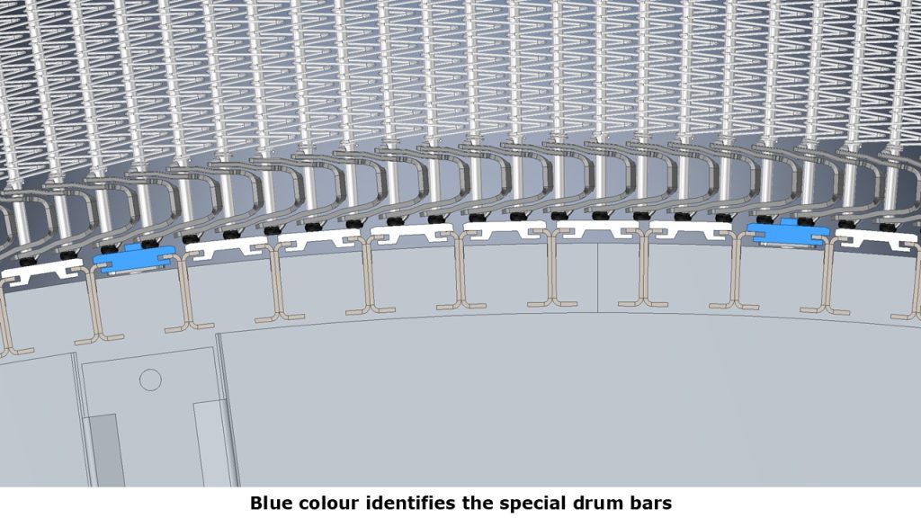Some of the bars were altered to guarantee engagement between the belt and the drum and therefore correct driving of the belt.